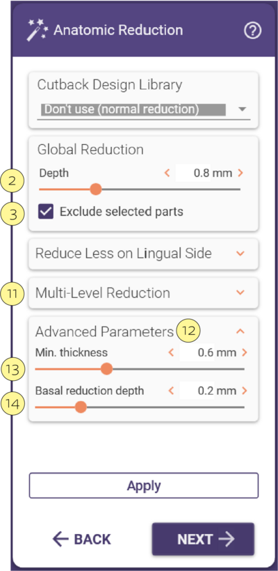 با اسلایدر Basal reduction depth [14] میتوان عمق کاهش نواحی پایهای را متفاوت تعیین کرد.